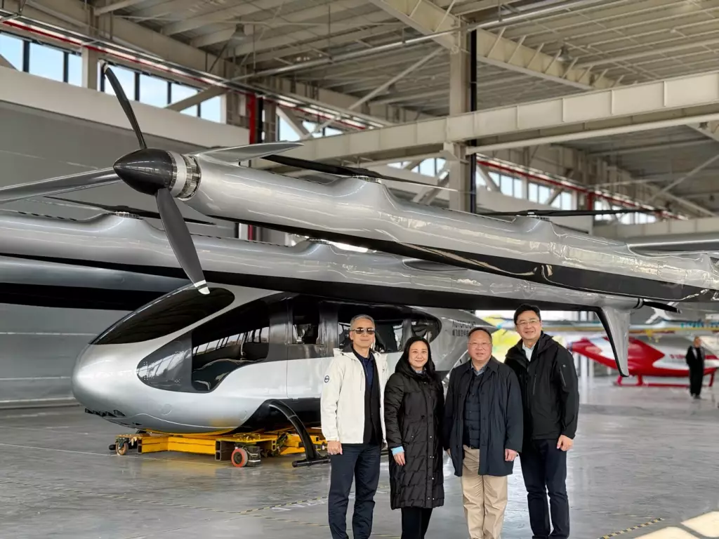 隨後,考察團參觀了位於昆山的峰飛航空科技(昆山)有限公司。該公司是國內最早布局eVTOL賽道的企業之一,其5座載人飛行器「盛世龍」曾創下單次充電飛行250.3公里的世界紀錄;而今年2月完成首飛的5噸級eVTOL「天際龍」,為目前全球最大電動載人飛行器,最大航程達1500公里,可承載10人。