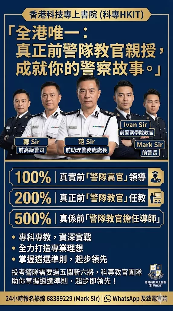 科專:由多位前「警隊高級長官及資深教官 | 擔任「學警」課程顧問及導師」| 實力「雄厚」| 絕對值得信賴