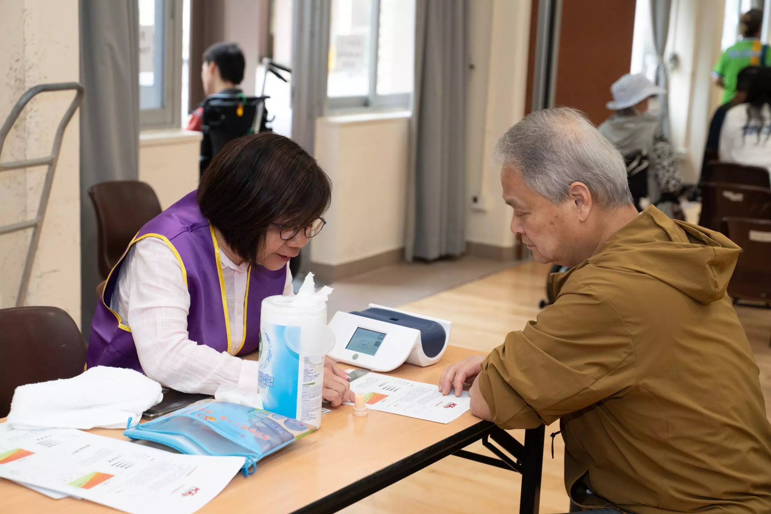 - 同場提供AGE血管檢測,義工根據數據進行解說,令大家可以了解自己健康狀況多一些。
