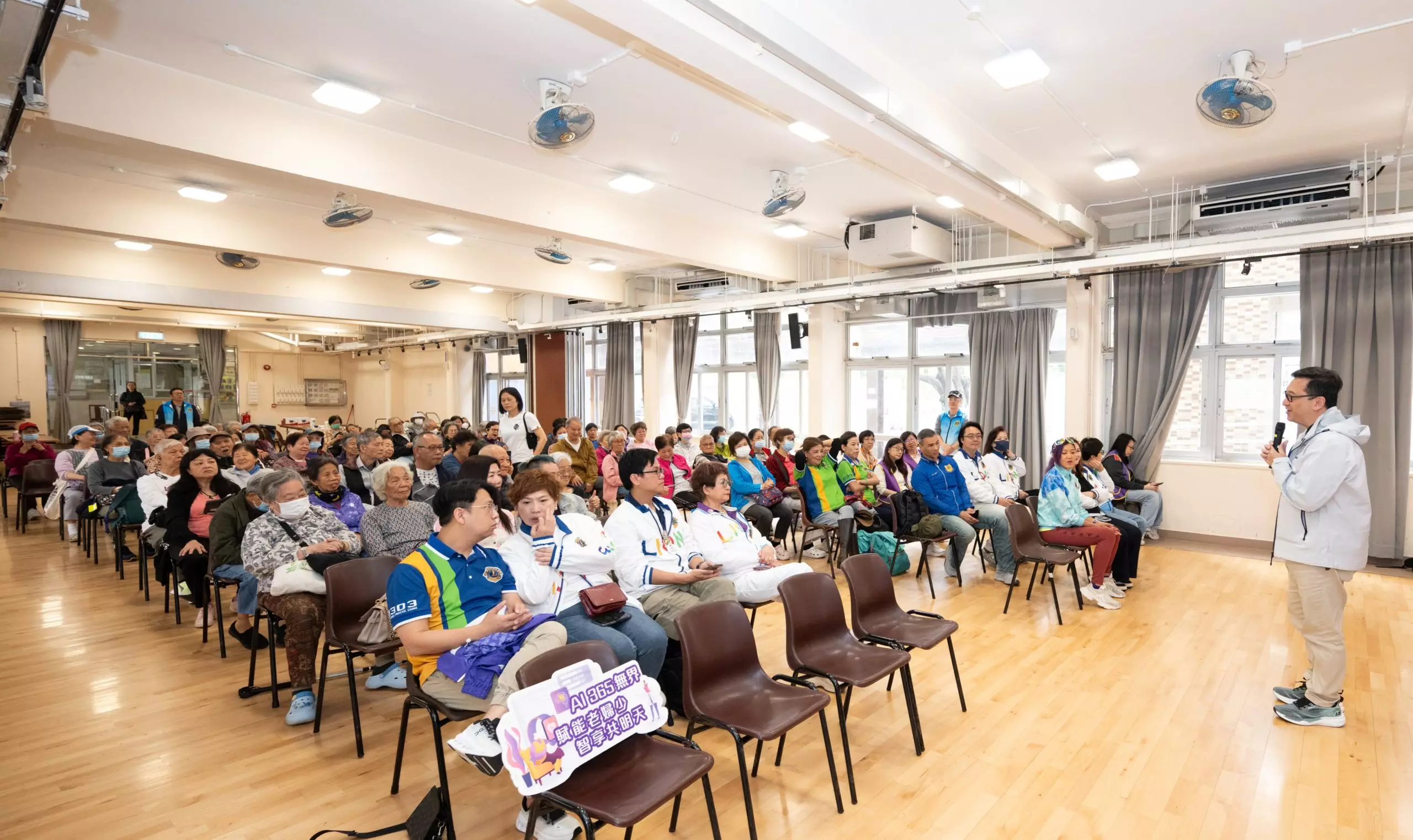是日協同#獅子會AI團隊,以及#一眾獅友義工,嚮黃大仙社區中心為120位老友記舉辦了「AI智慧生活坊+ AGE血管檢測」活動。