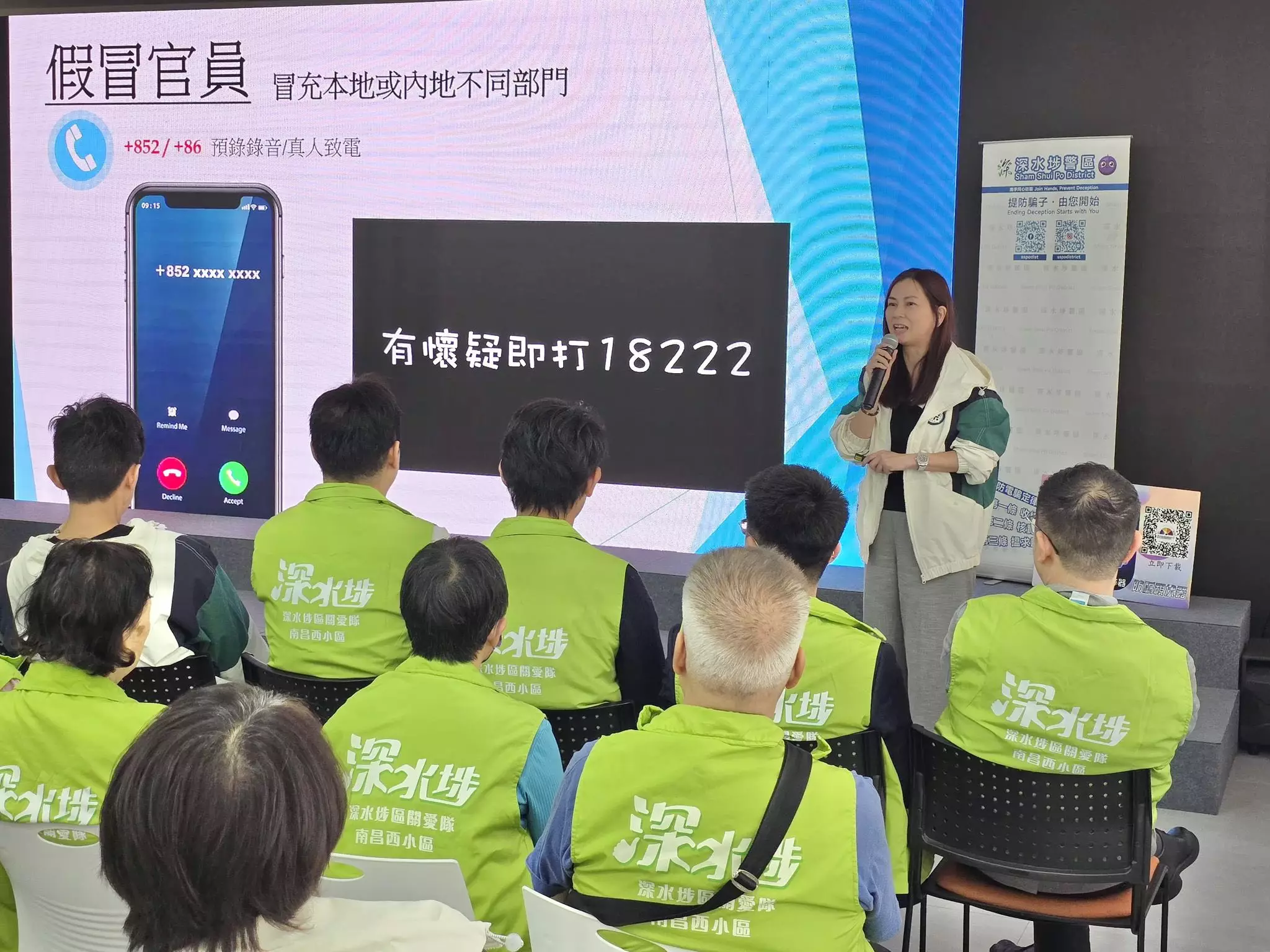 昨日(24日)深水埗警民關係組同深水埗區南昌西小區關愛隊協辦「新型電子騙案:防騙知多啲義工培訓」活動,向關愛隊及義工們講解最常見的騙案,同時派發最新由反詐騙協調中心出版的「全城防伏手冊」,希望透過關愛隊將防騙手法傳遞出社區,讓大家進一步了解最新騙案形勢,主動提升防騙意識。