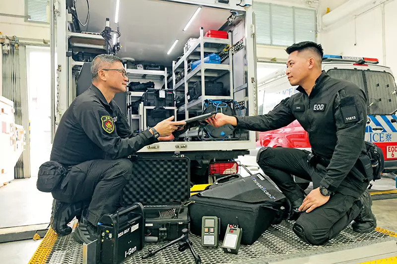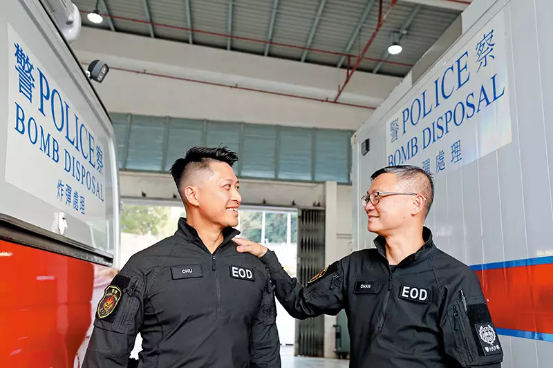 陳光鴻說:「No.1雖然經常在鎂光下,但鏡頭外的No.2和No.3也絕非配角,對保障No.1以至現場人員安全尤關重要。行動中,當No.1評估現場環境後,會先由No.2嘗試操控拆彈機械人將爆炸品銷毁,No.3則負責團隊後勤支援,確保兩位所需物資到位,無後顧之憂。待No.2初步消除現場風險後,No.1才會靠近危險品。現實往往與電影不同——沒有簡單的紅線藍線運氣選擇,而是要對每一項風險逐層拆解,才能安全地化險為夷。」