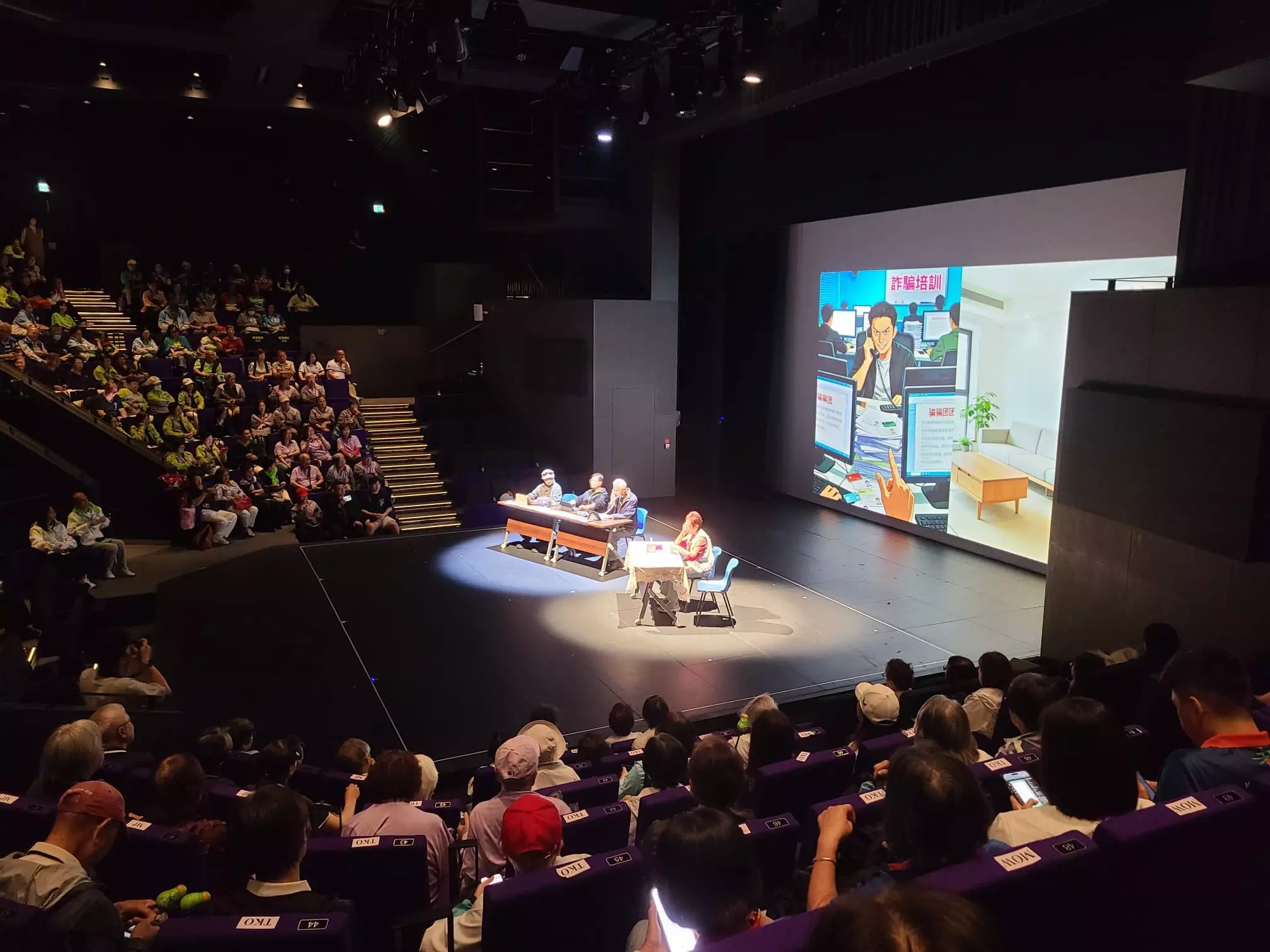 2026-03-26,九龍城區耆樂警訊嘅一班老友記嚟到東九文化中心,欣賞由耆樂警訊總部舉辦嘅第一屆防騙話劇決賽。